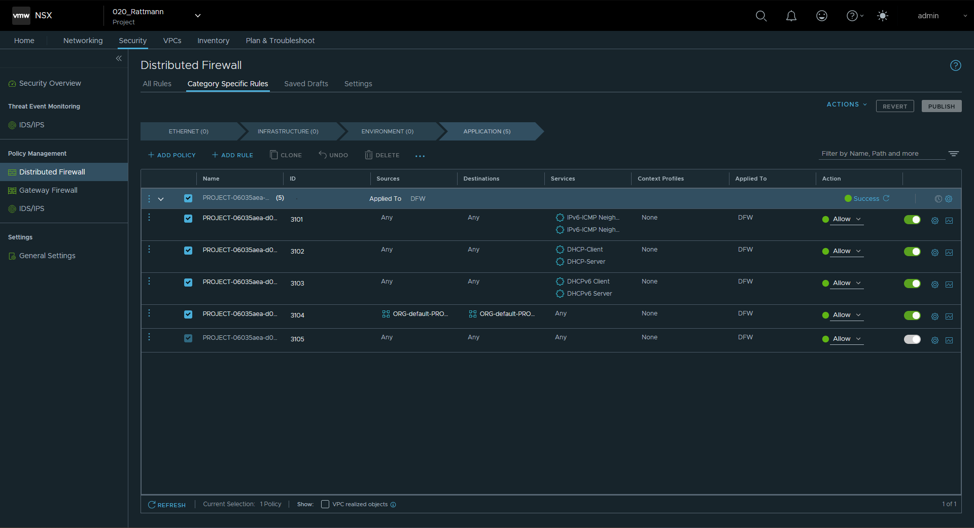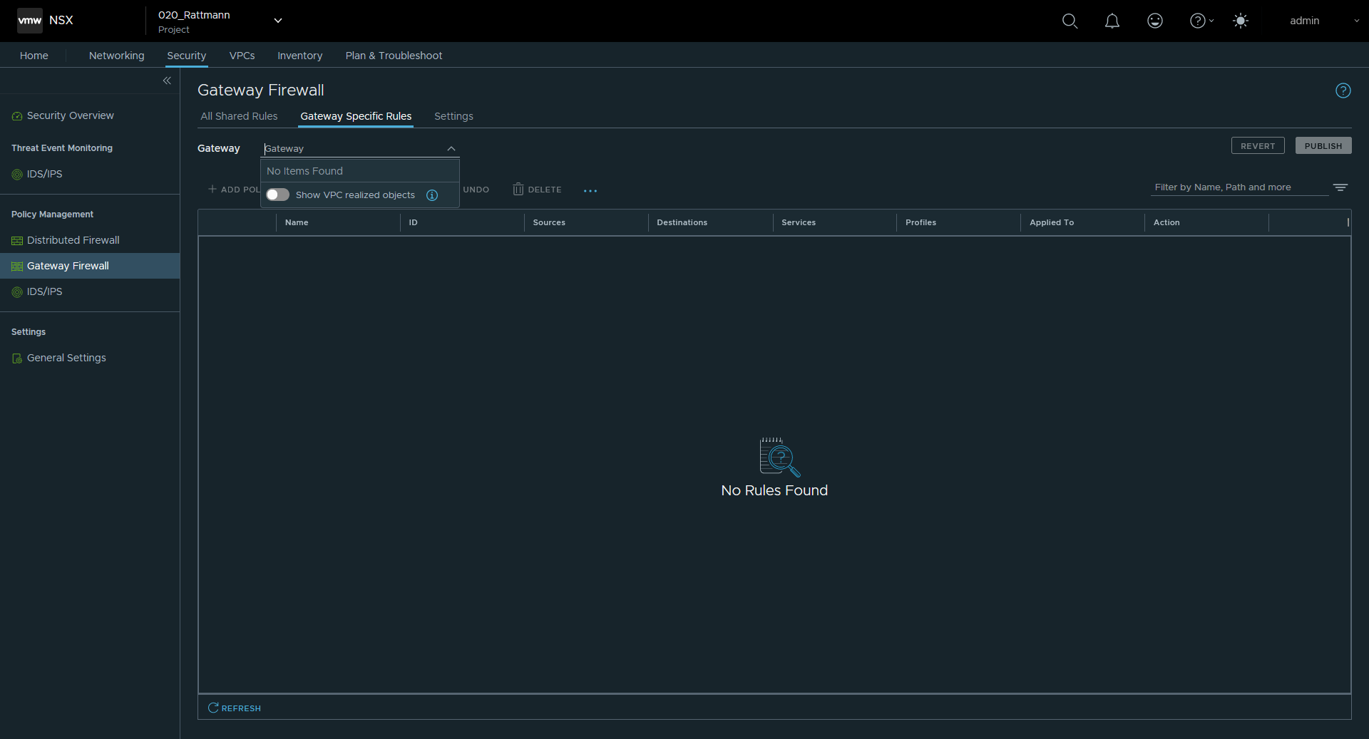 The error here is letting us know that it was not possible to delete an item since it’s still in use. Well that’s not nice! So first a check what is still configured for that Org VDC, but I couldn’t find any configuration items still in use. I took a second look at the error and saw that this error comes straight out of NSX since I recognize the API path (/orgs/default/projects/<id>/infra/domains/....). My second investigation focused on NSX, but I couldn’t find any resources in use there either. NSX will show that there are some default rules in the Distributed Firewall, but they simply can’t be deleted. The API call used shows that a project still had something with ‘gateway policies’ but there’s no T1 Gateway linked to the project and the gateway firewall is empty, so why is this error showing?