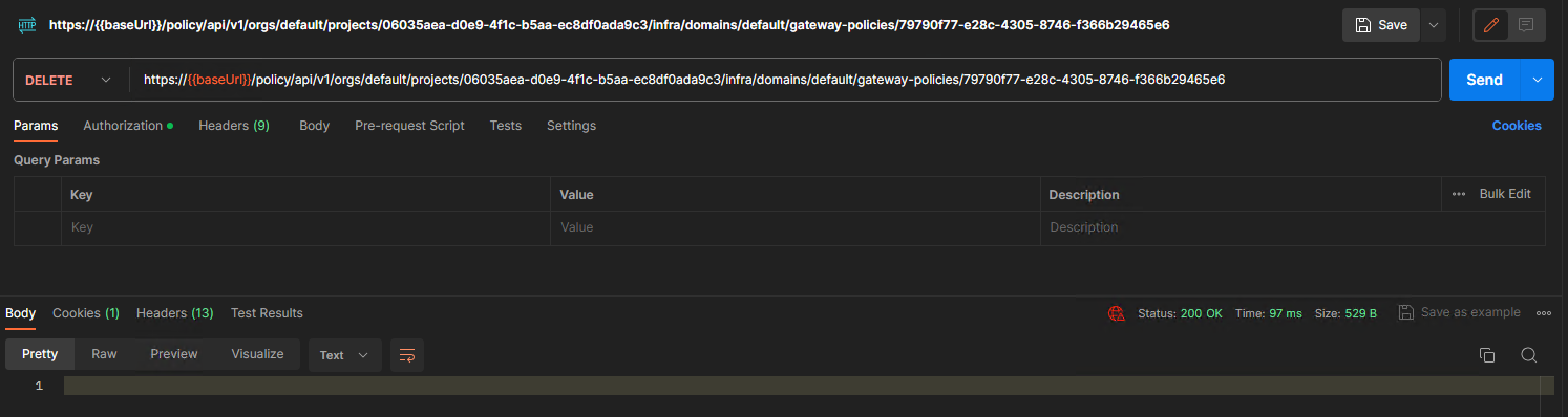 DELETE https://{{baseUrl}}/policy/api/v1/orgs/default/projects/06035aea-d0e9-4f1c-b5aa-ec8df0ada9c3/infra/domains/default/gateway-policies/79790f77-e28c-4305-8746-f366b29465e6