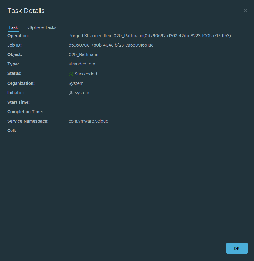 Would it now be possible to delete the Org VDC? Yes! The task finishes successfully.